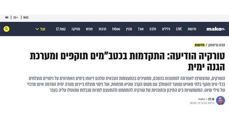 MİLLİYET.COM.TR / İsrail’in önde gelen haber sitelerinden Mako, Türkiye’nin savunma sanayisinde son dönemde kaydettiği ilerlemelere geniş yer verdi. Shai Levi’nin kaleme aldığı haberde, Türkiye’nin son günlerde Mısır’daki Gazze ateşkesi anlaşmasına aracılık eden ülkeler arasına katılmasının yanı sıra, askeri kapasitesini artırma yönündeki çabalarını kararlılıkla sürdürdüğü ifade edildi.